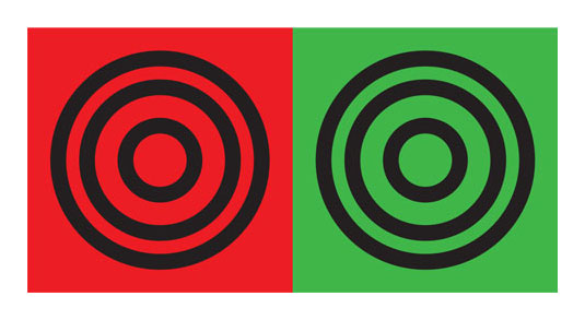 Farsightedness: When a black circle on a green background appears dark.